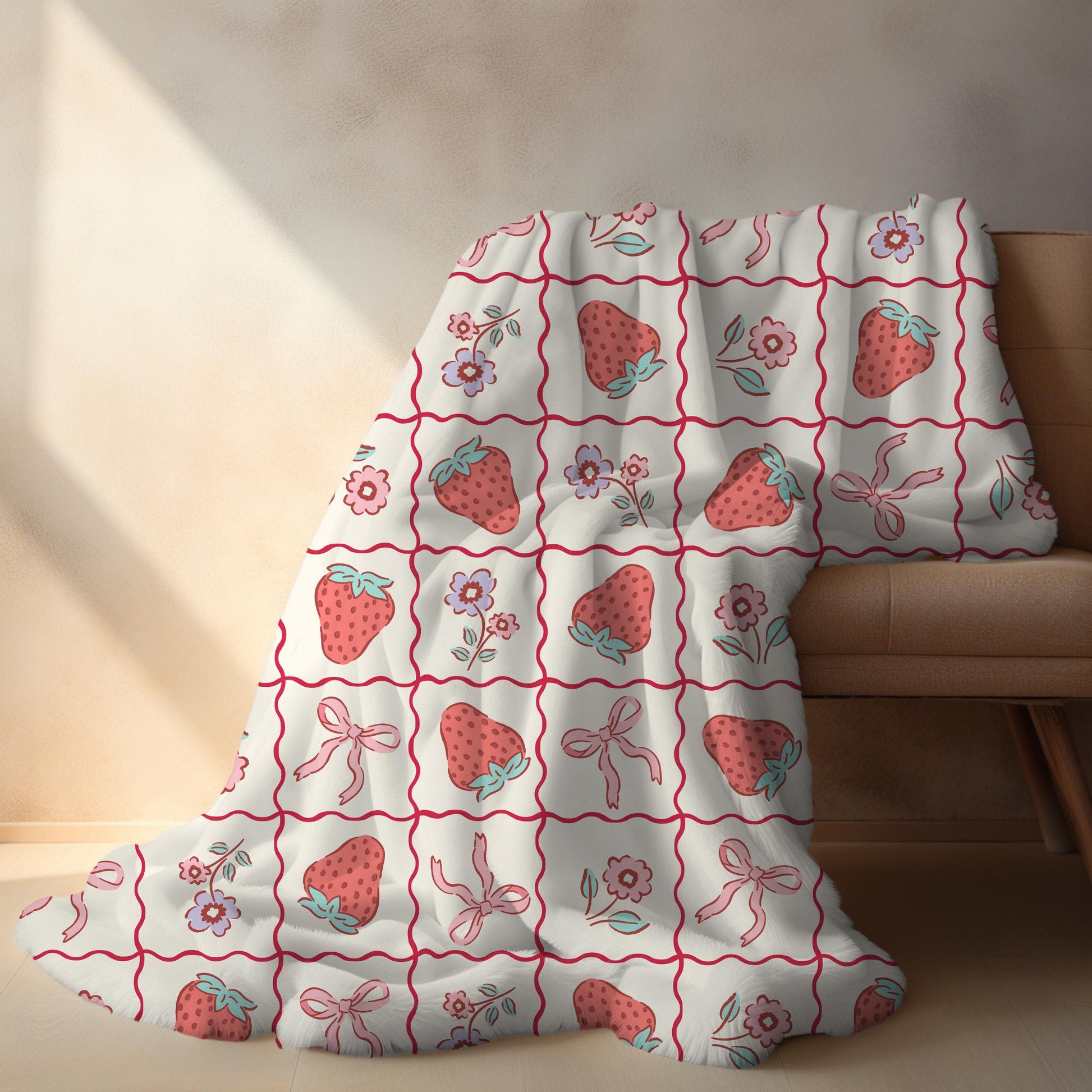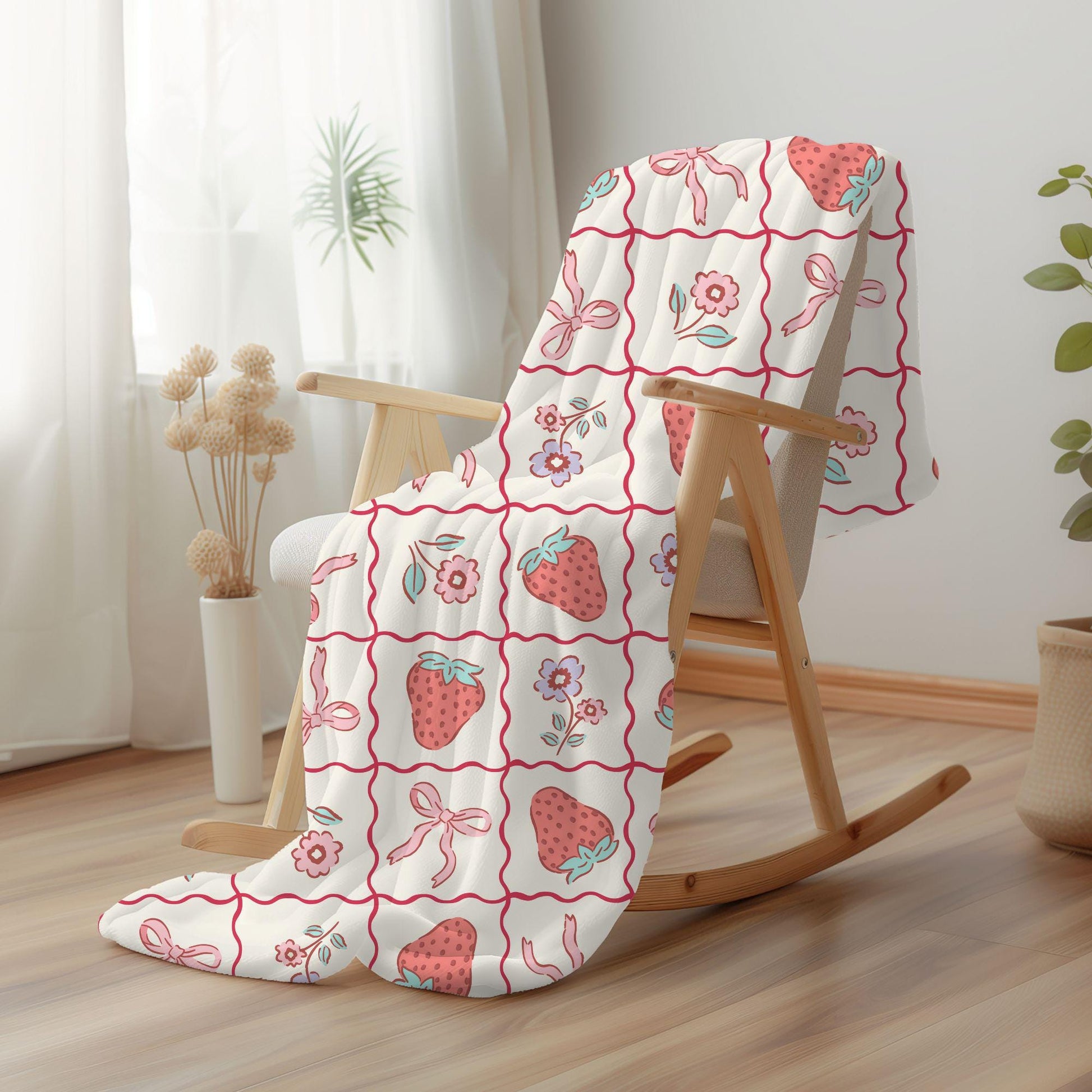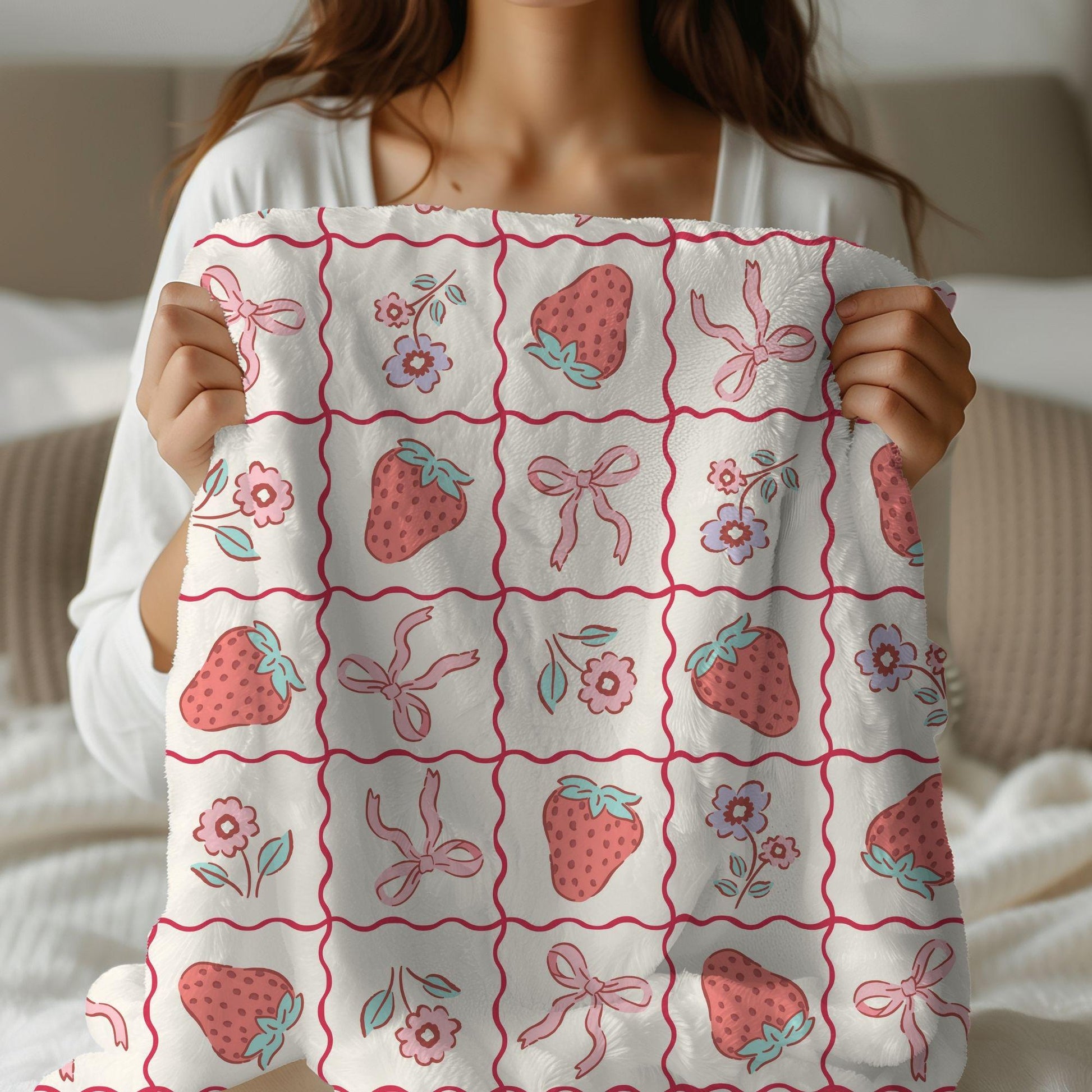 Personalized coquette pink bow Blanket, cute strawberry room decor, preppy stuff room decor, pink bow baby blanket, bow decor