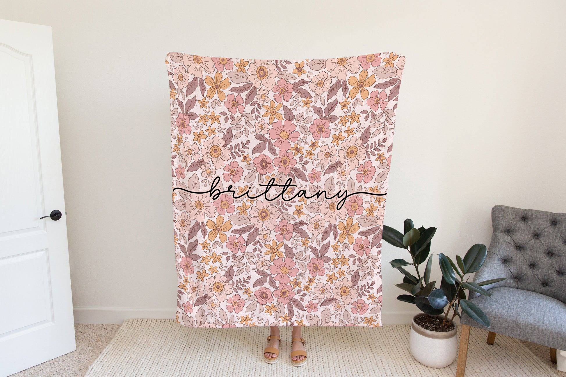This custom floral blanket is not only practical but also a thoughtful gift that combines beauty and functionality. New parents will love it for their baby's nursery, while others will appreciate it as a stylish home accessory.