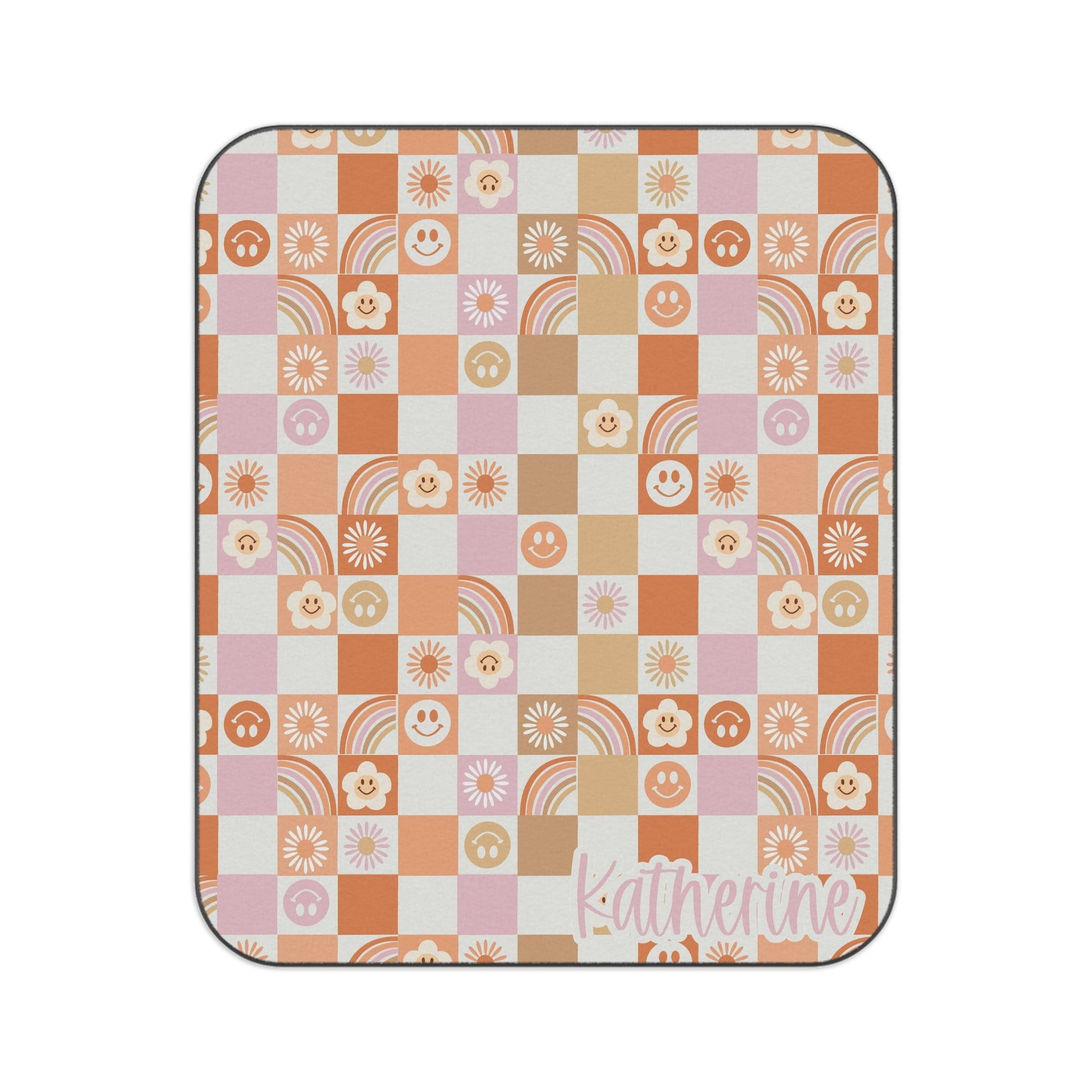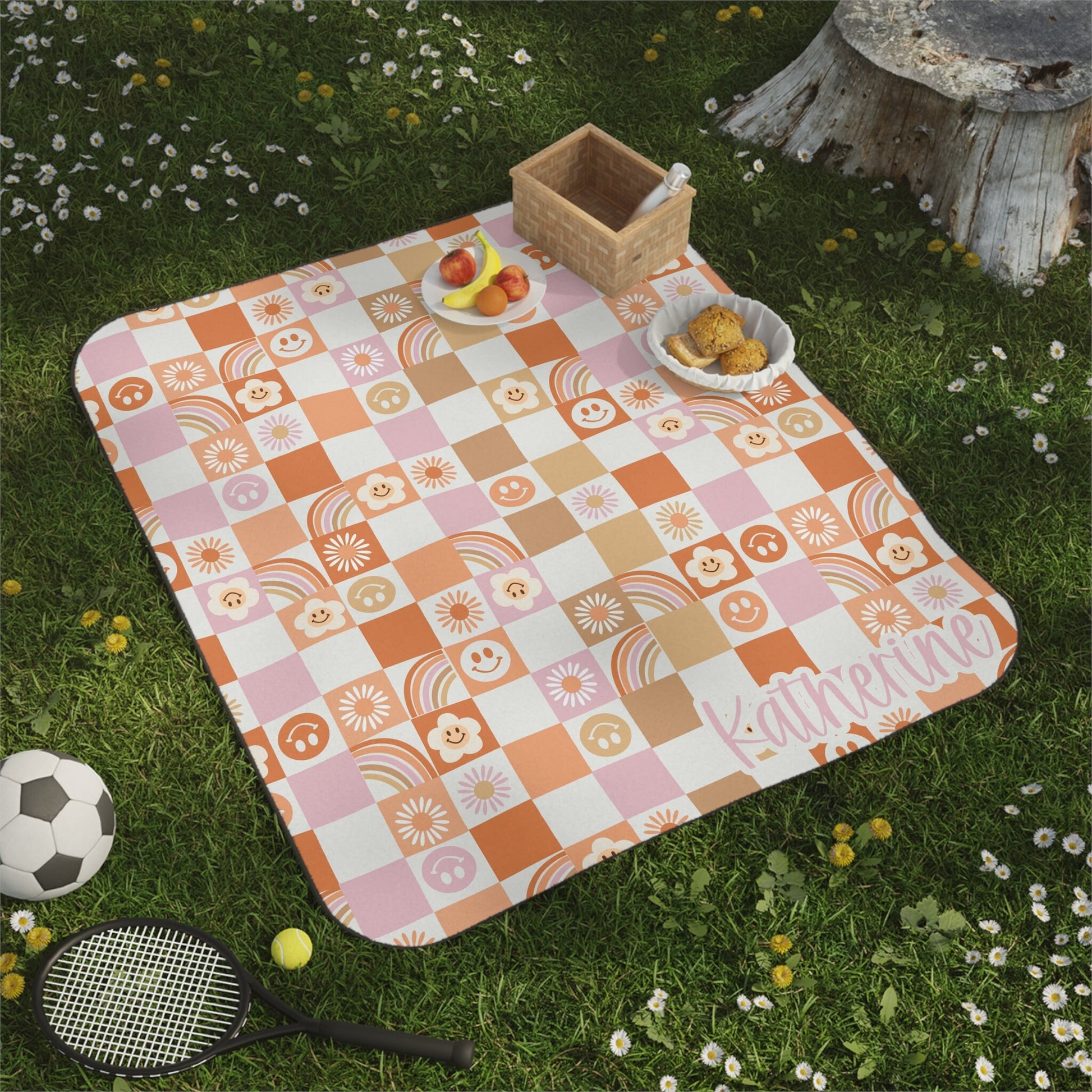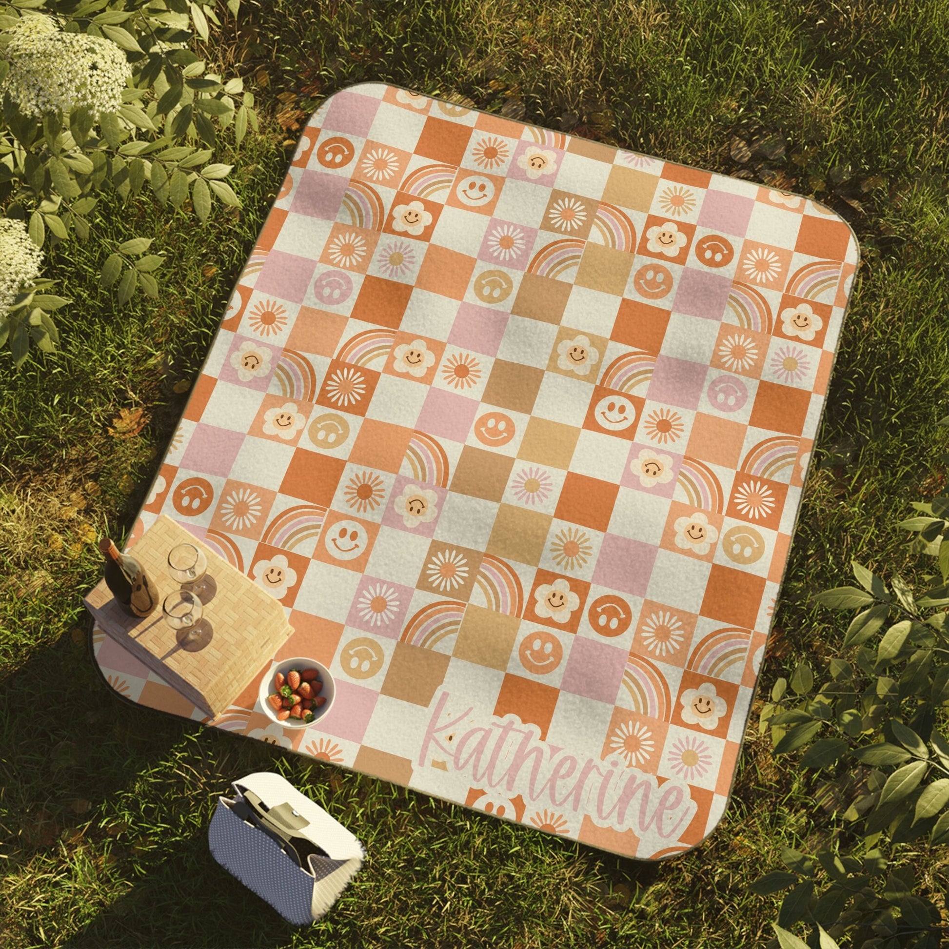 Personalized Groovy Retro Checker Picnic Blanket Waterproof