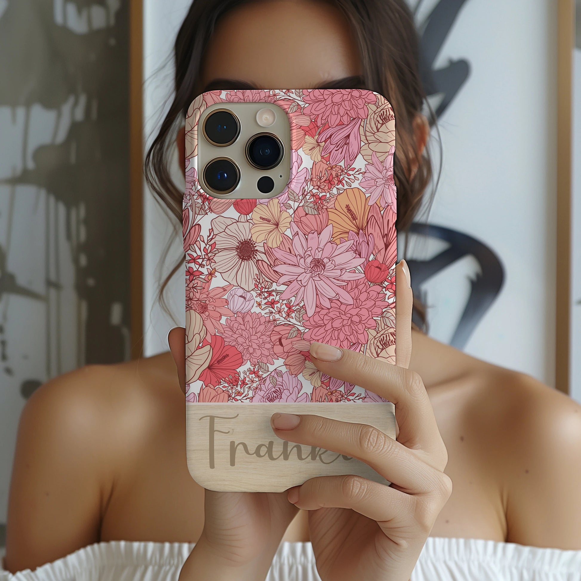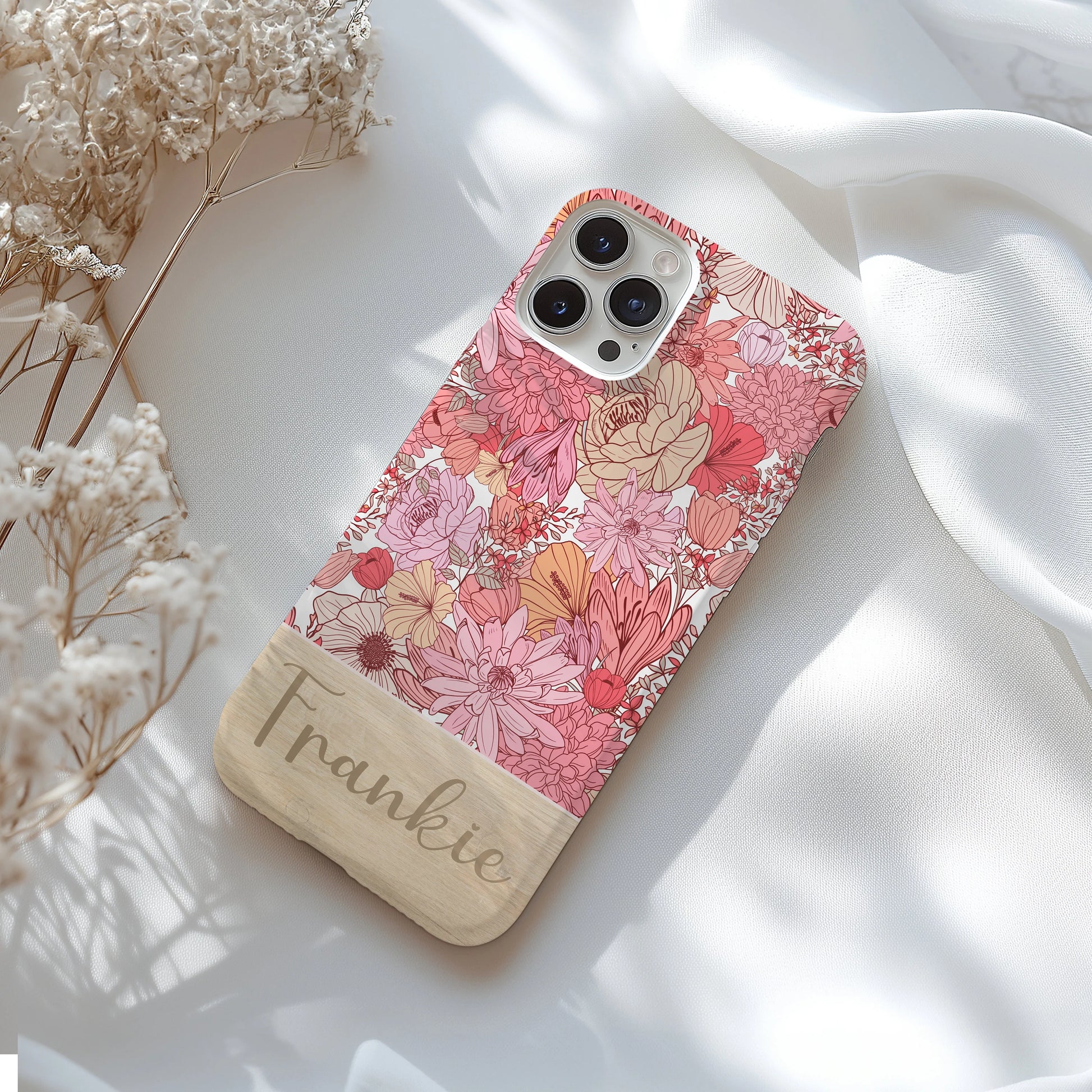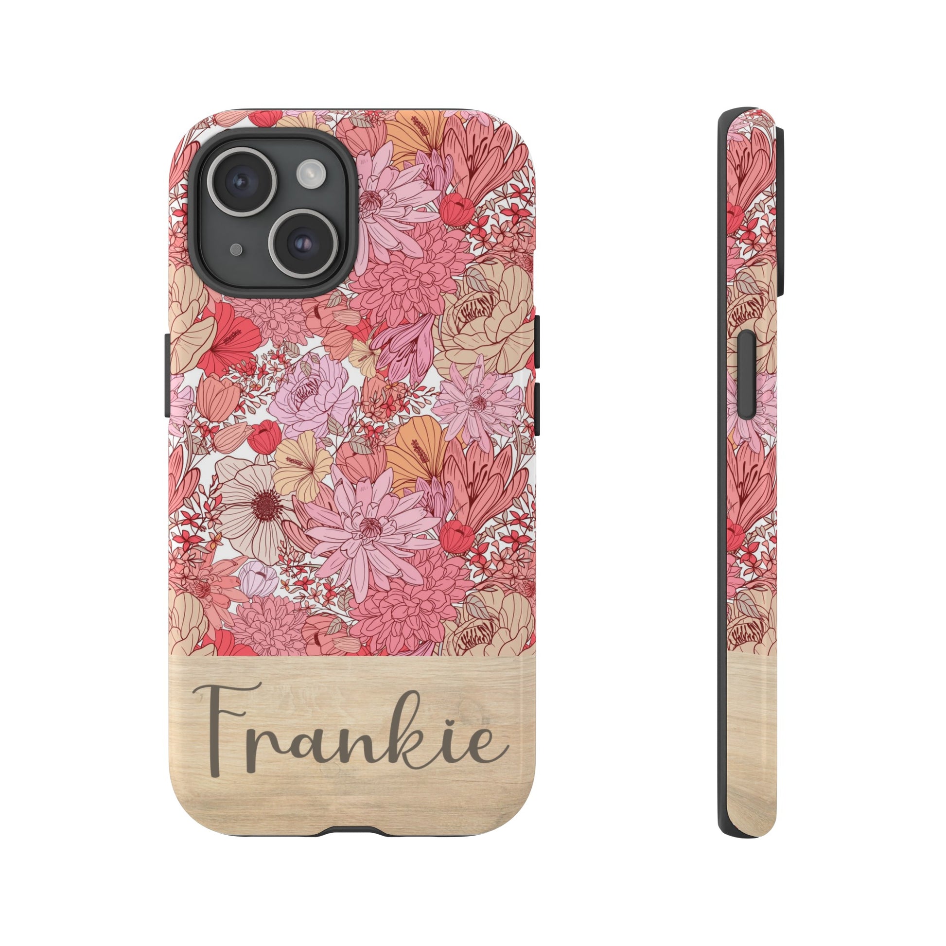 Personalized Pink Floral Tough Phone Case for iPhone, Samsung and Google Phones