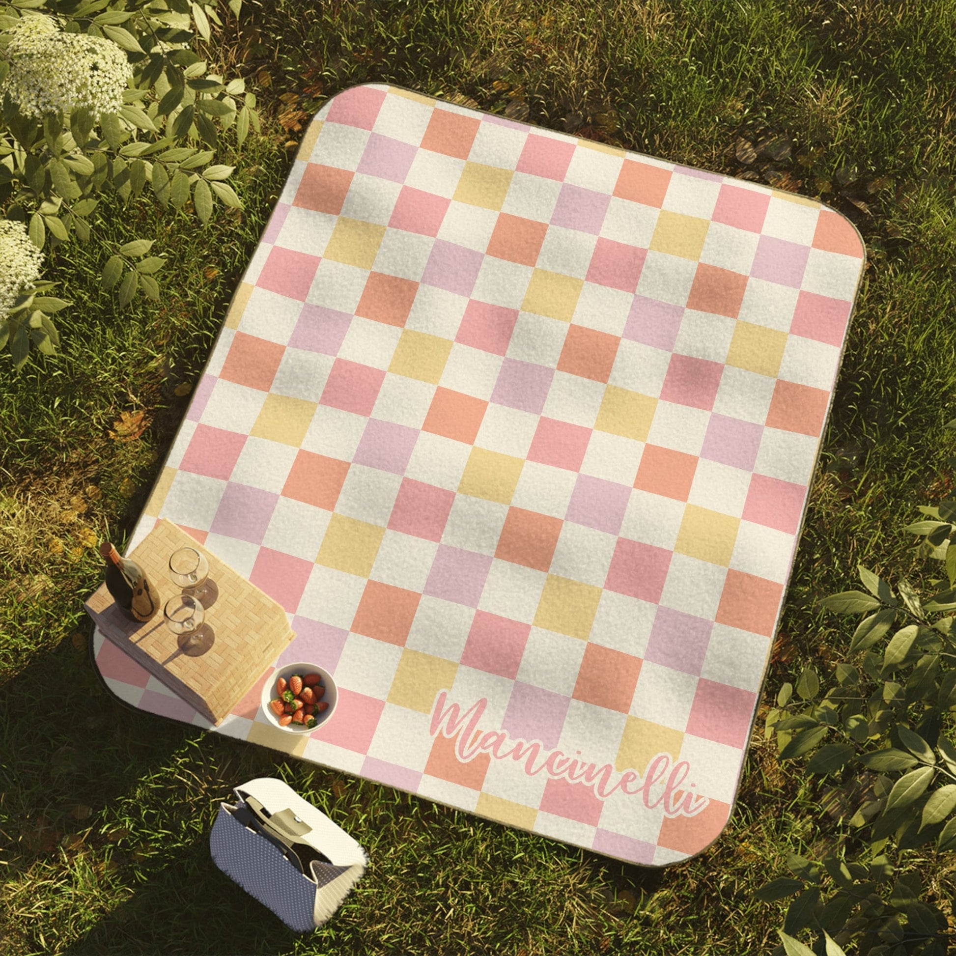 Personalized Pastel Checkered Picnic Blanket Waterproof