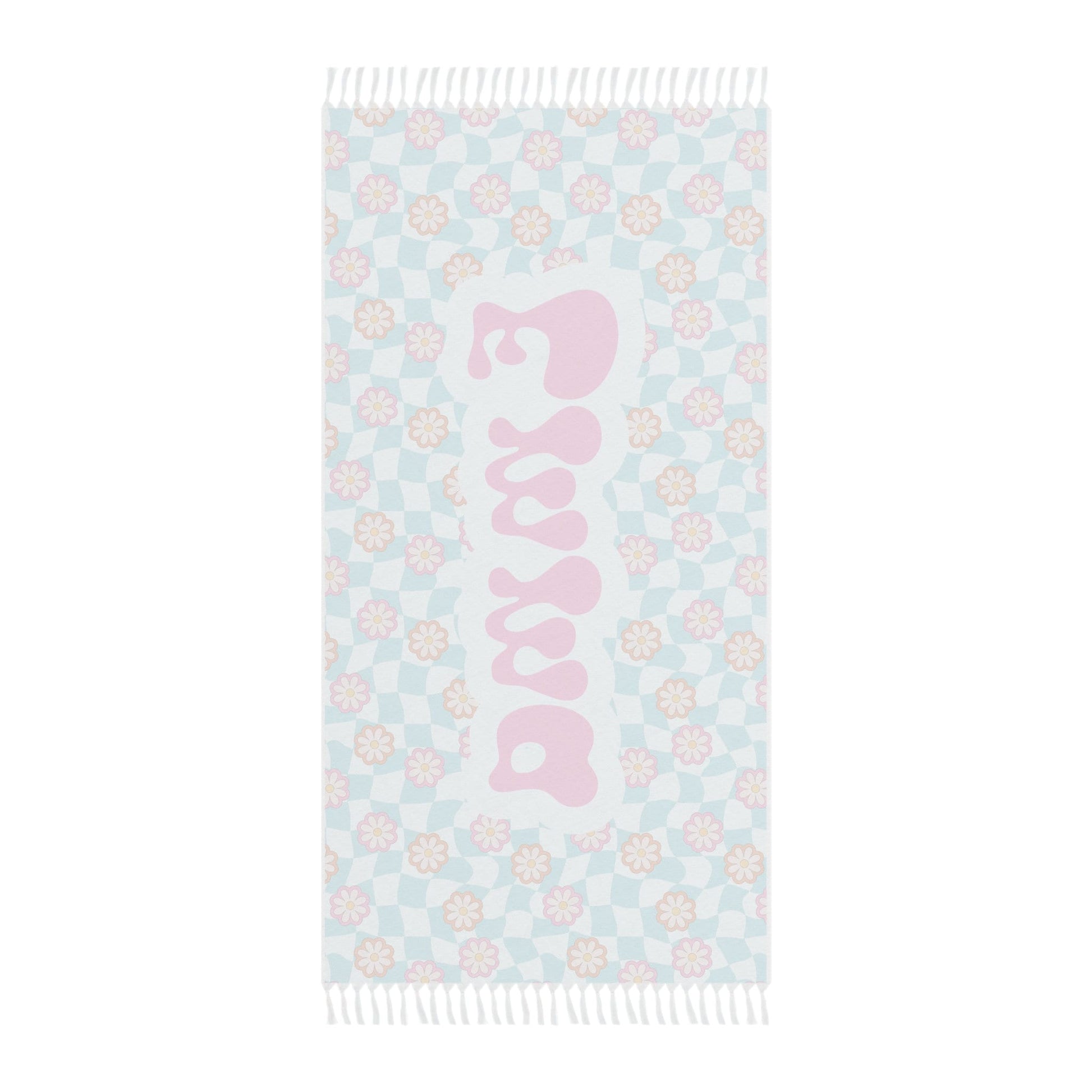 Personalized Pink and Blue Floral Groovy Checkered Beach Towel