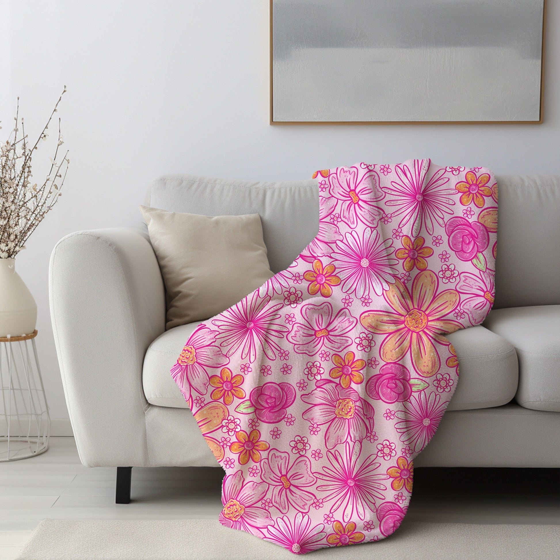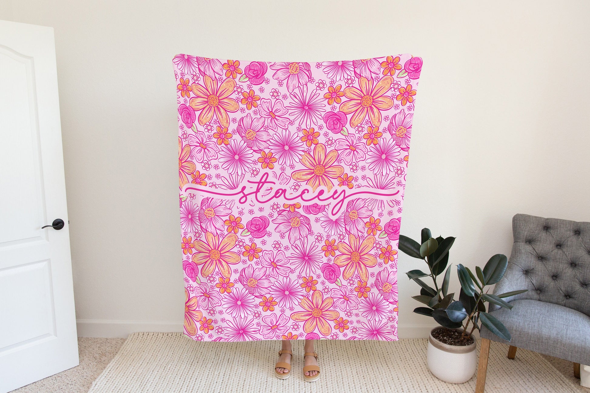 Snuggle up in style with our Personalized Pink Floral Blanket. Adorned with colorful pink florals, this blanket is the perfect blend of comfort and personalization. Make it yours with a playful touch - it's the perfect addition to any cozy corner.