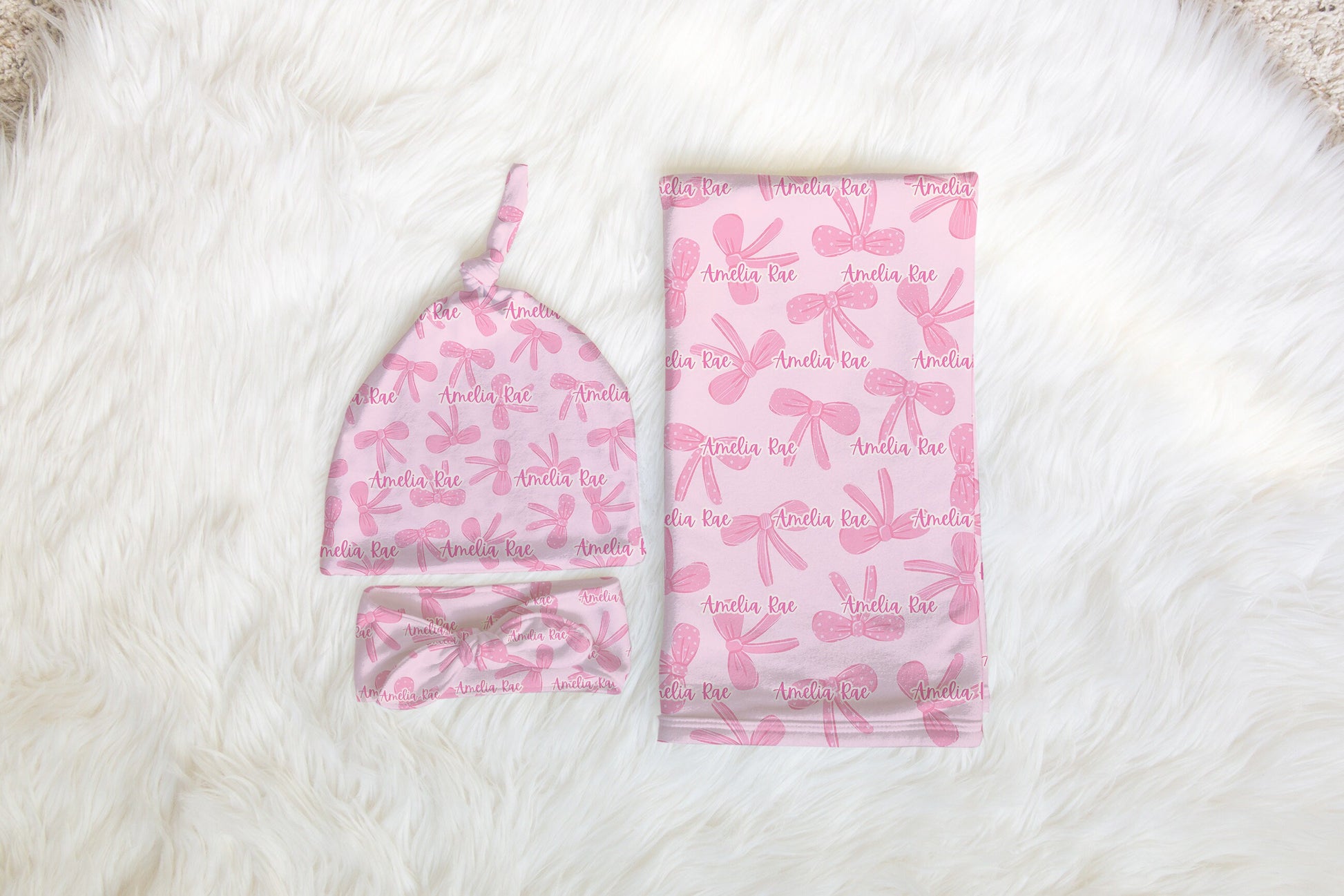 Personalized swaddle Set Pink Coquette Bow