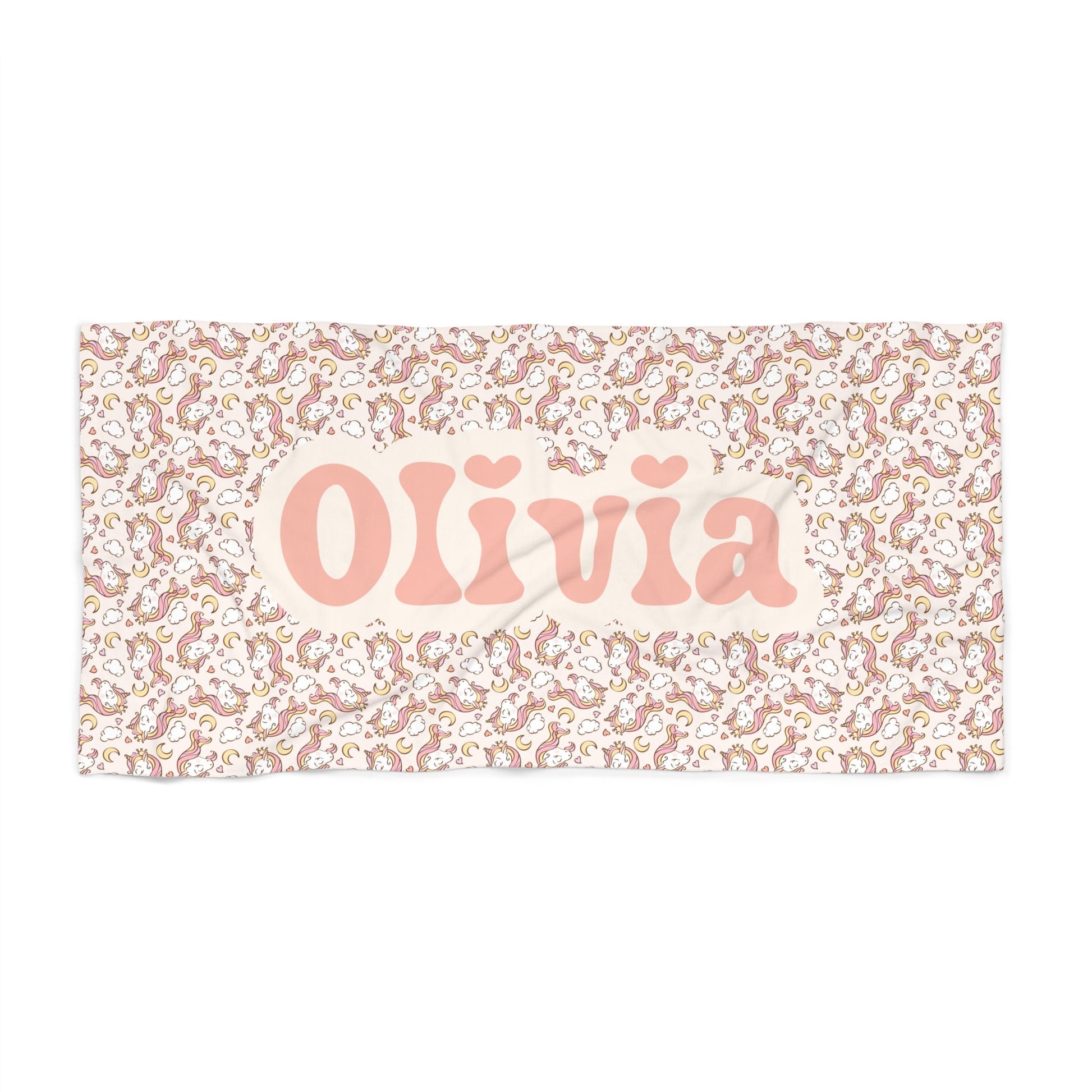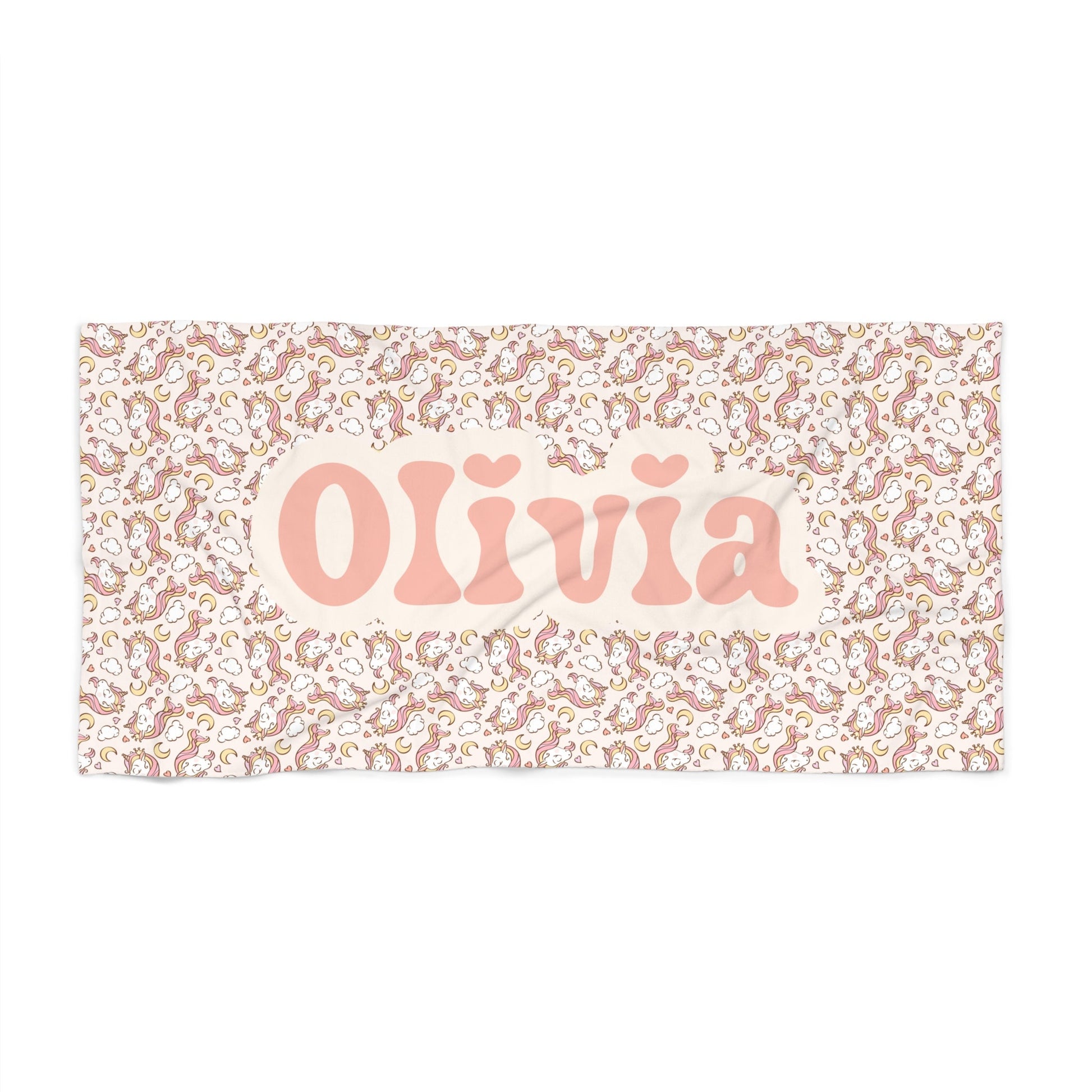 Custom Unicorn Magic: Make a splash with a touch of personalization! Add your name to this beach towel to create a one-of-a-kind accessory that's uniquely yours.