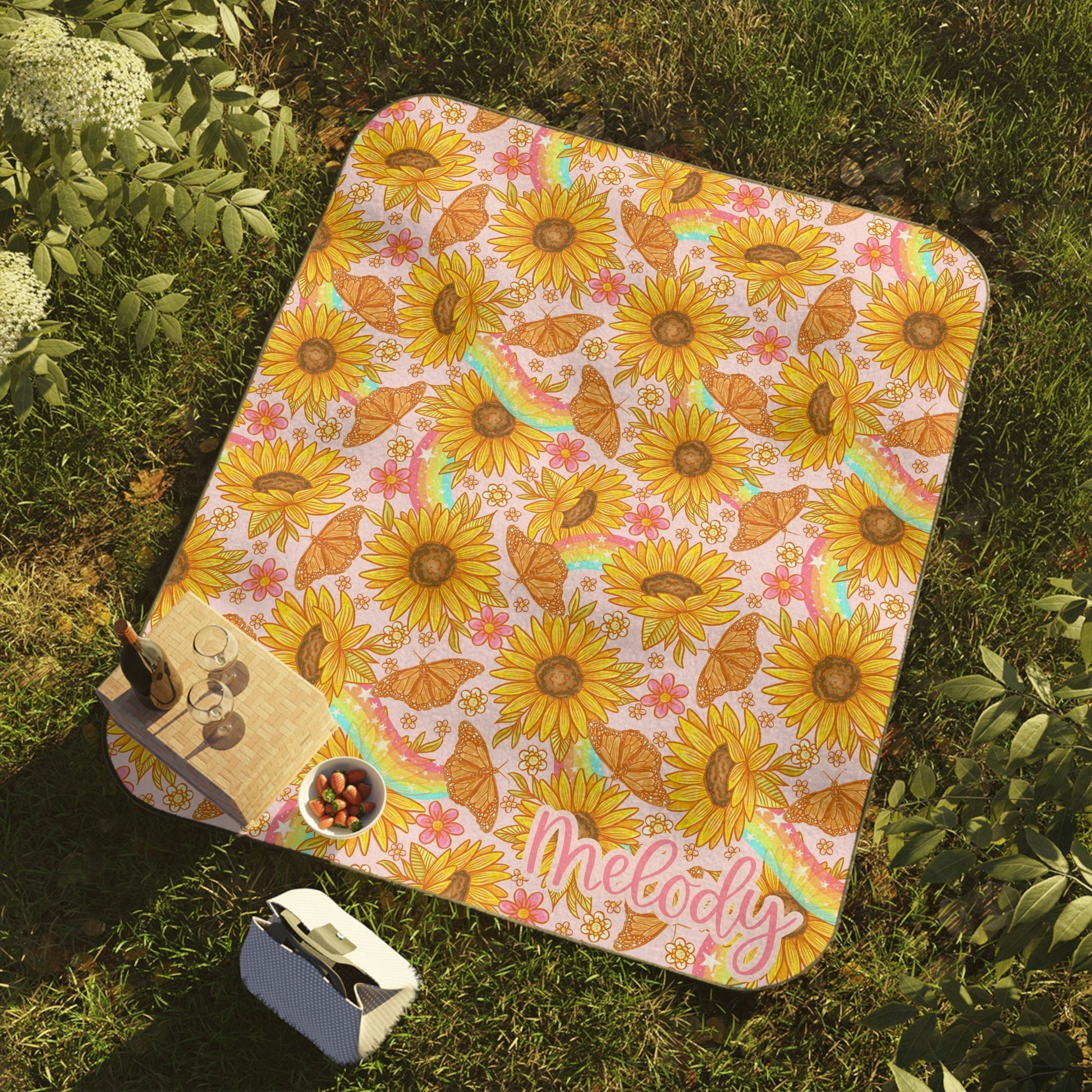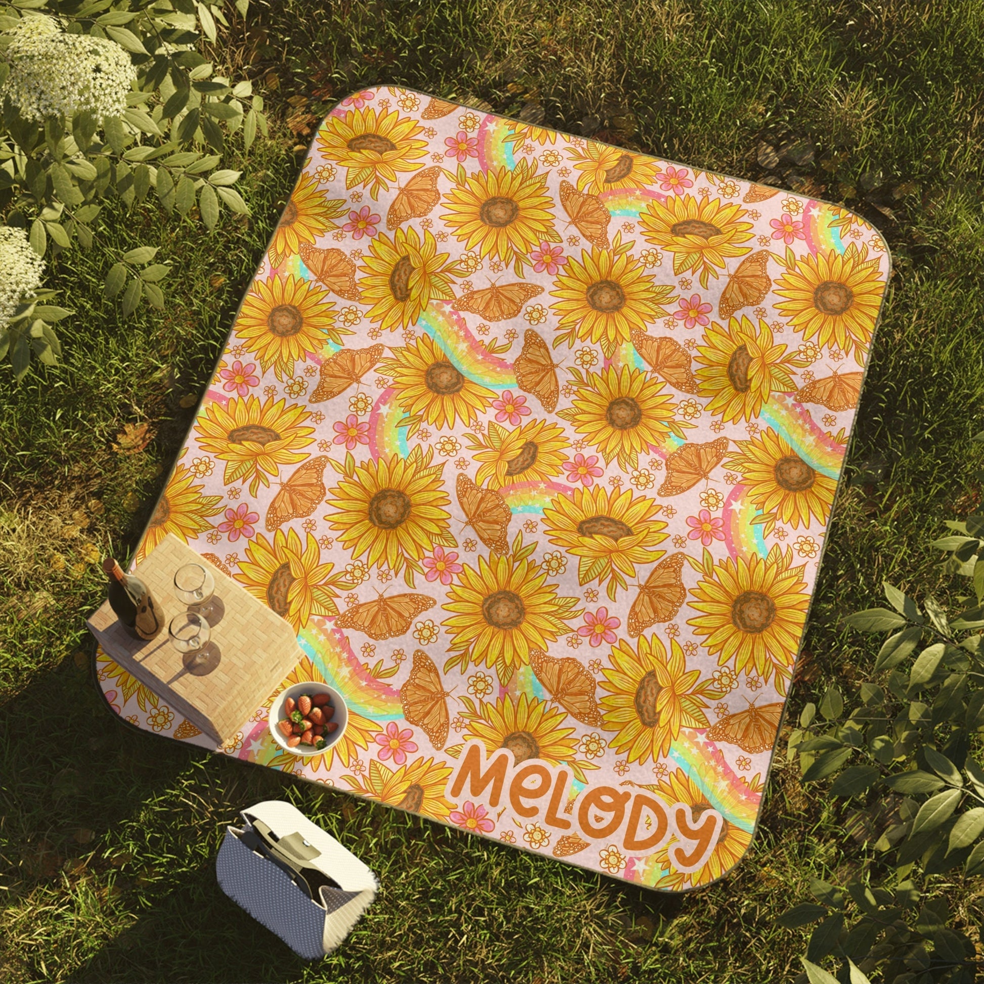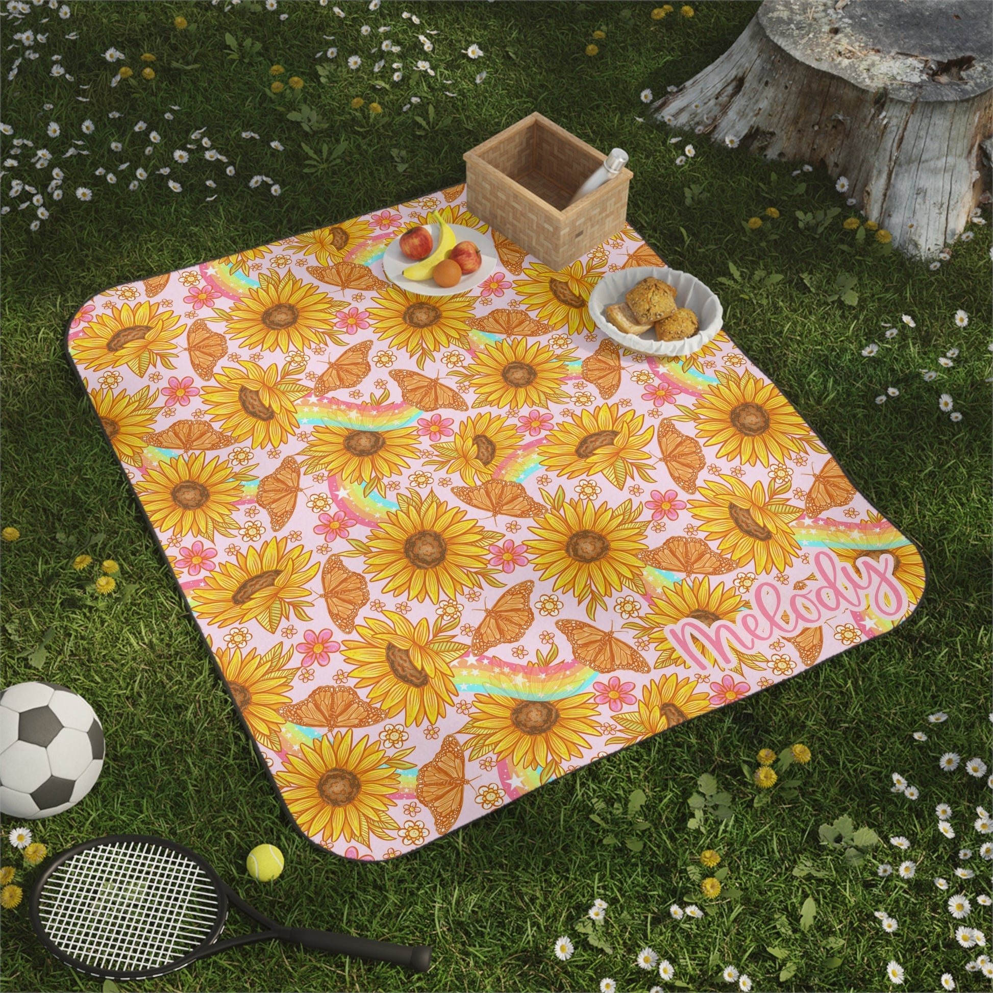 Personalized Yellow Floral Picnic Blanket Waterproof