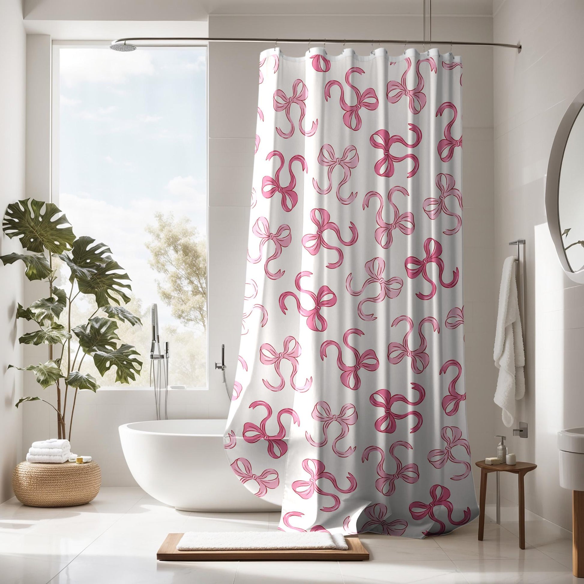 Pink Bow Shower Curtain Coquette decor, custom trendy coquette bathroom decor, preppy shower curtain, aesthetic bathroom decor personalized