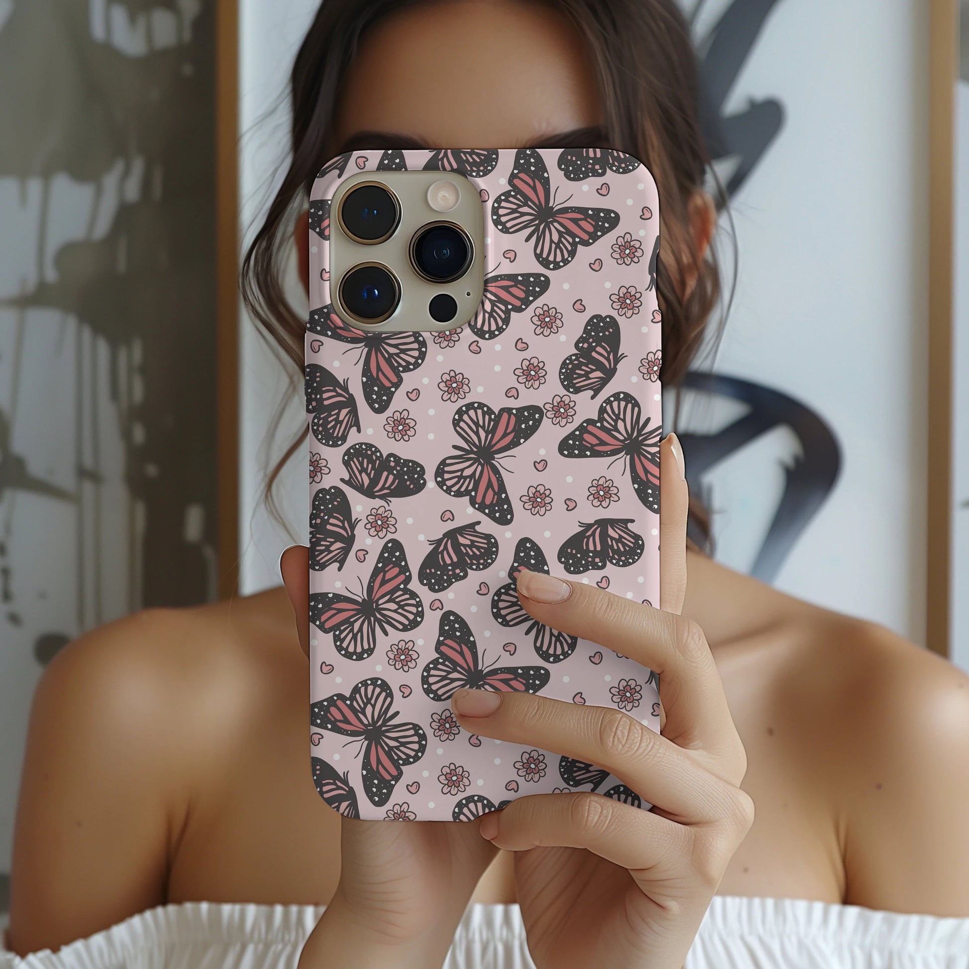 Perfect for those who appreciate a preppy and cute aesthetic, this phone case is a must-have accessory for any trendsetter. Treat yourself or someone special to a personalized touch with our Pink Butterfly Y2K Phone Case, and let your phone reflect your unique personality and style. .: Materials: 100% polycarbonate (shell), 100% TPU (lining) .: Dual layer case for extra durability and protection .: Available with a glossy or matte finish .: Clear, open ports for connectivity