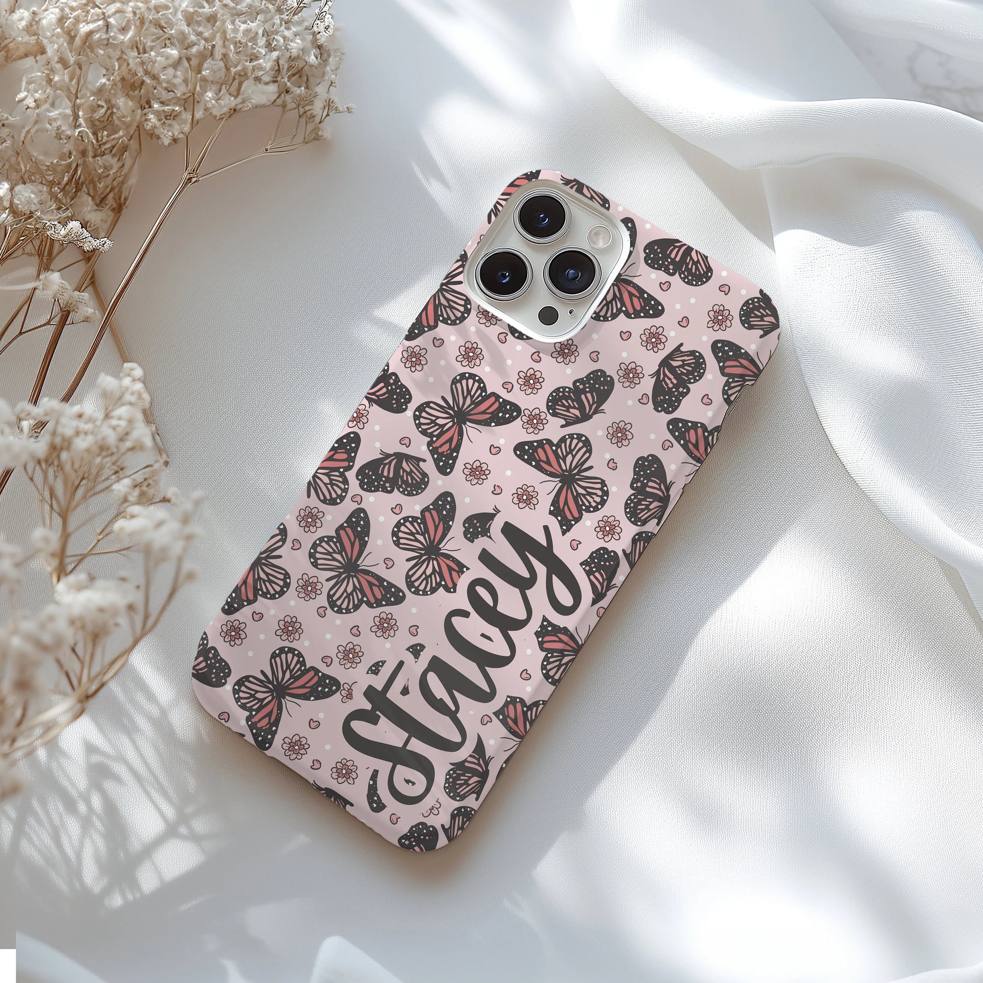 Elevate your phone game with our Personalized Pink Butterfly Y2K Phone Case, a charming blend of nostalgia and modern style. Adorned with delightful butterflies and personalized just for you, this case is as unique as it is adorable.