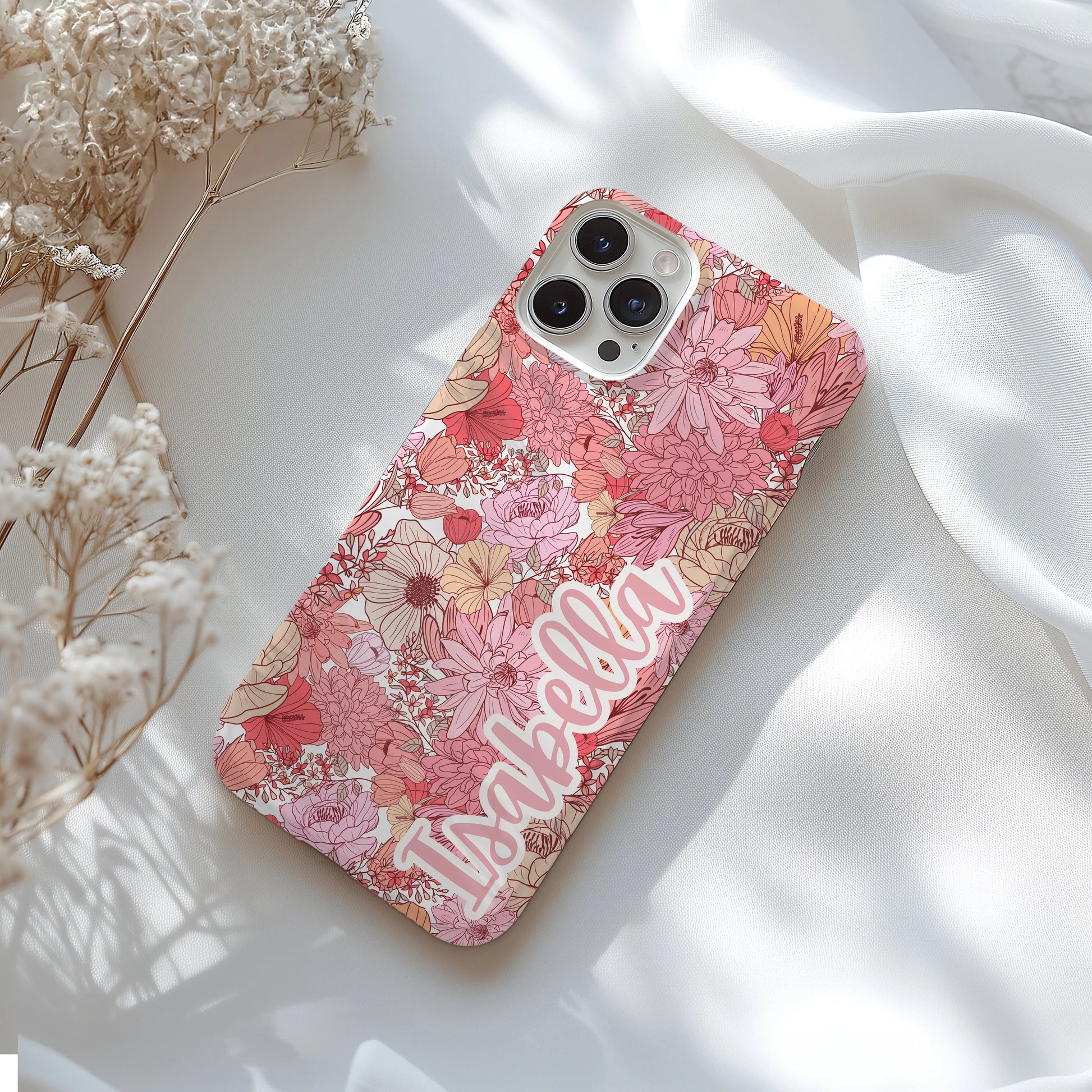 Personalized Floral Tough Phone Case for iPhone, Samsung and Google Phones