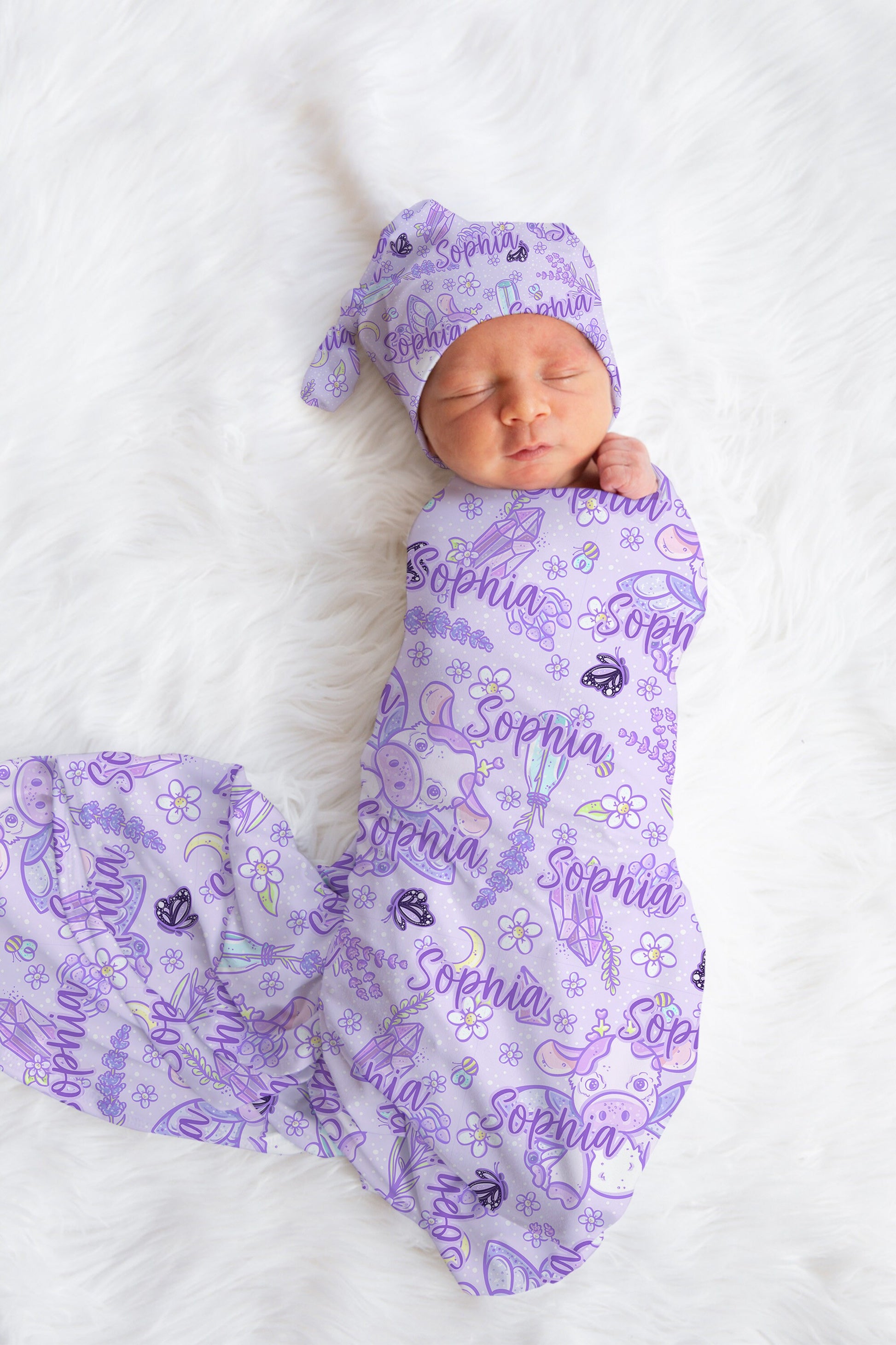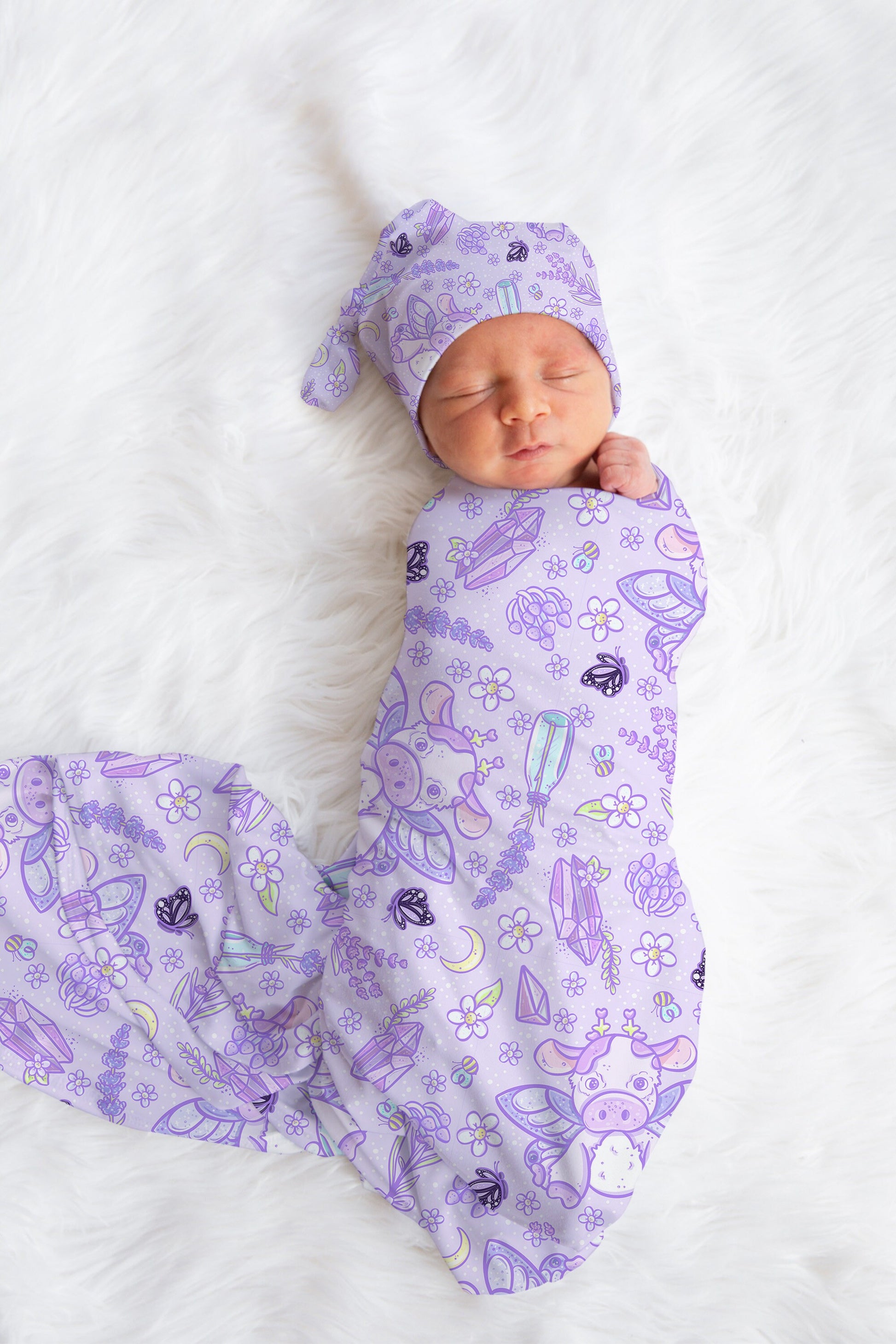 Introduce your little one to the world with our Purple Whimsical Swaddle and Bow Set! Perfect for a newborn girl’s hospital reveal outfit, this enchanting set includes a soft, stretchy swaddle, a matching bow, and a cozy hat, all in a delightful purple design.