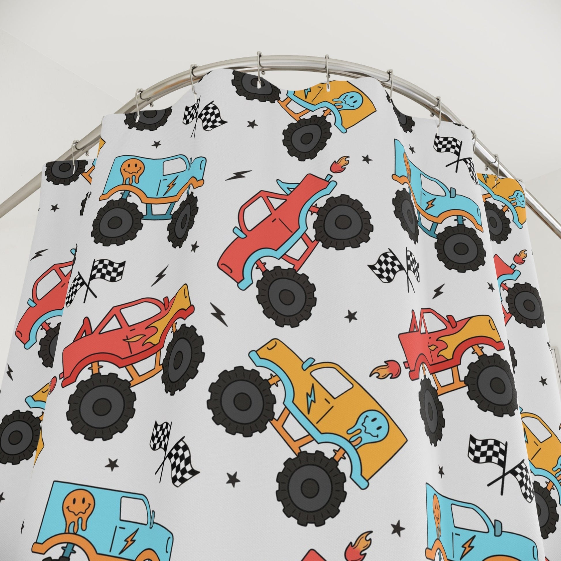 Shower Curtain Personalized boys, kids shower curtain trucks, custom shower curtain, kids bathroom decor boys
