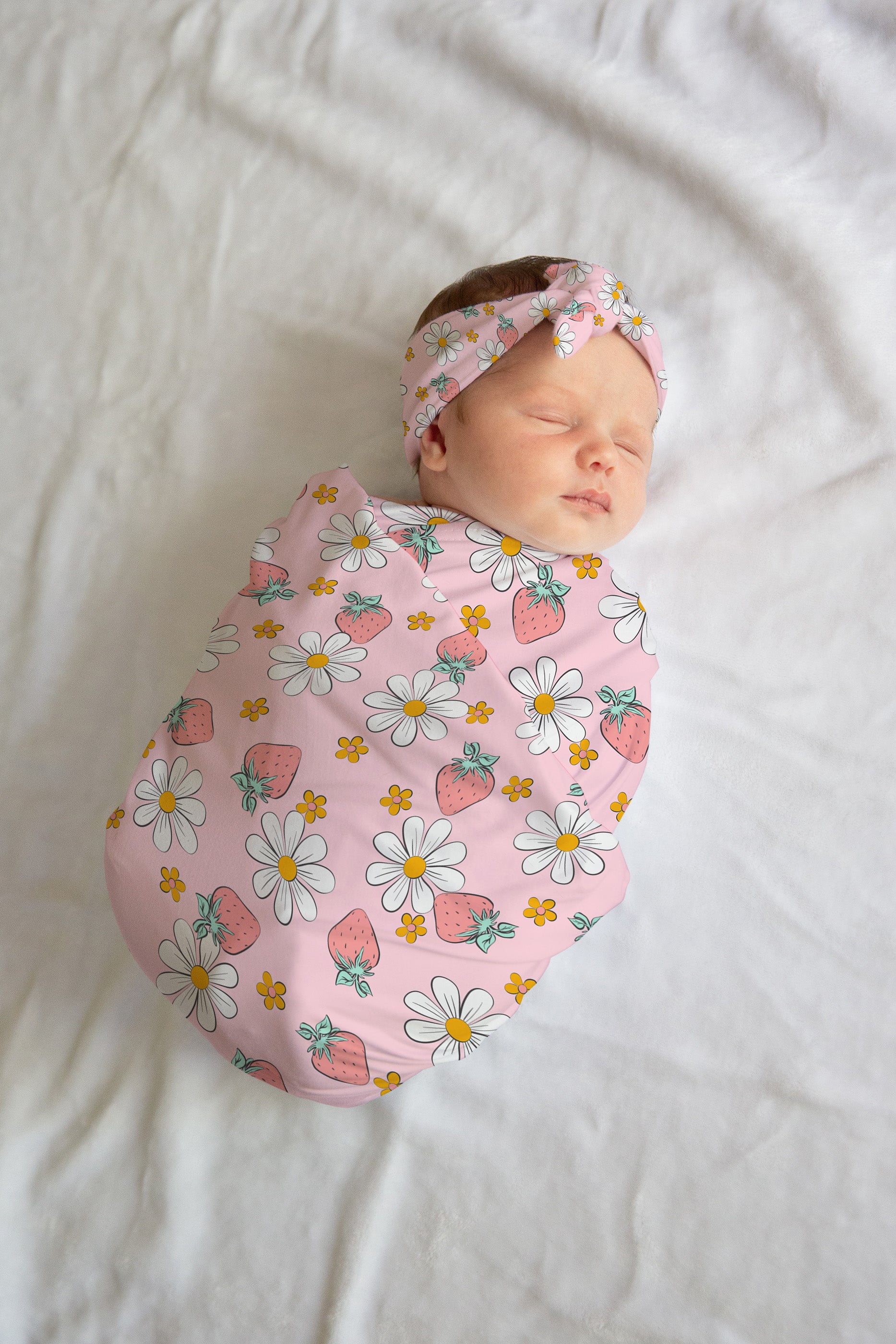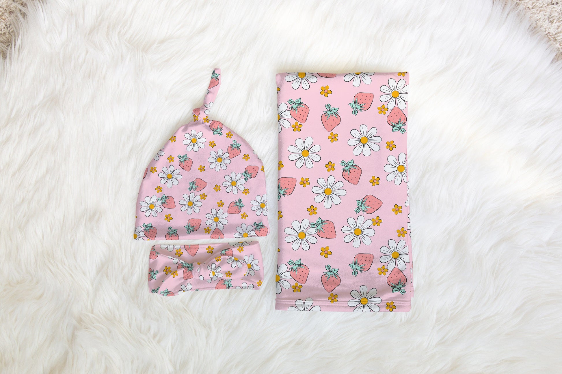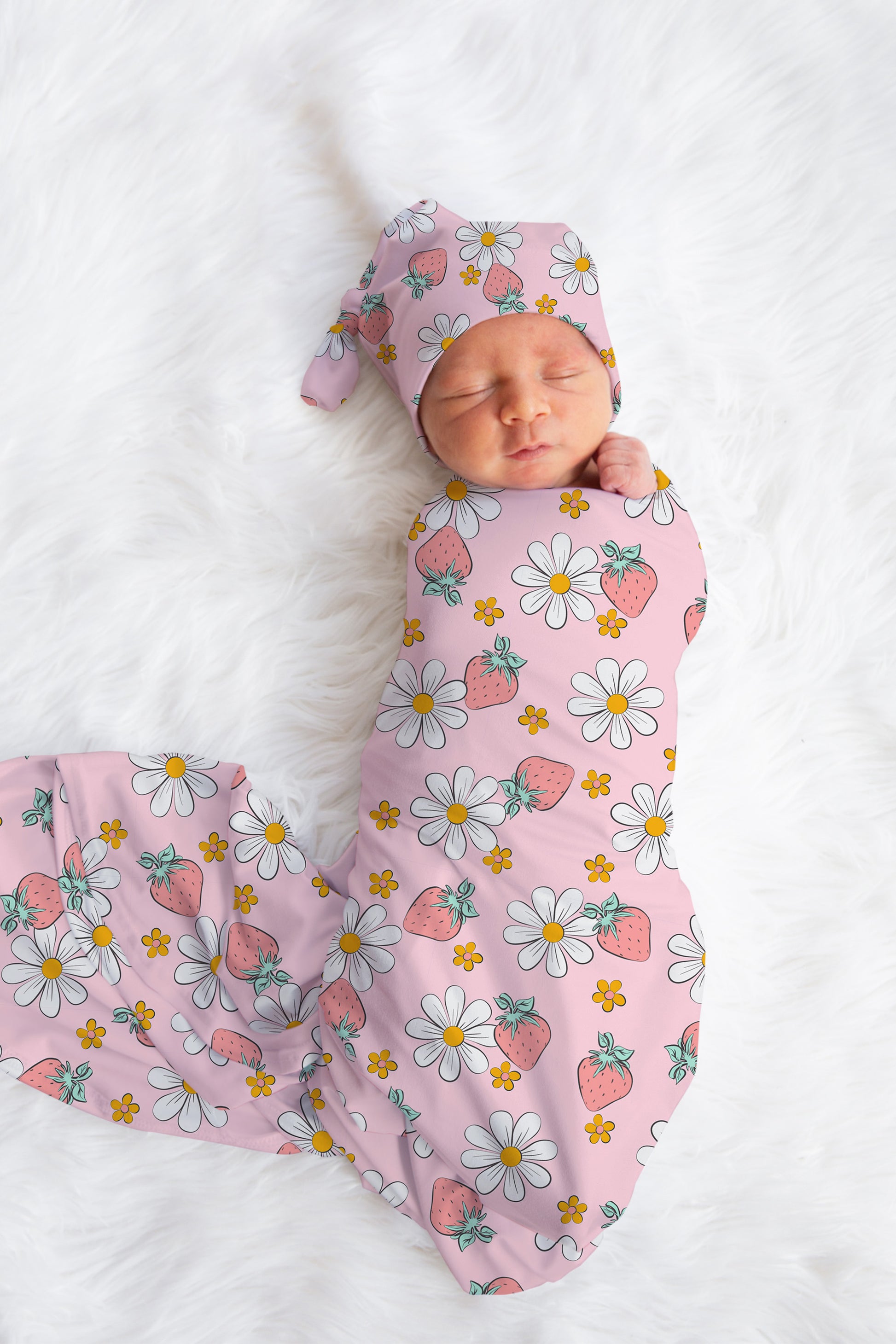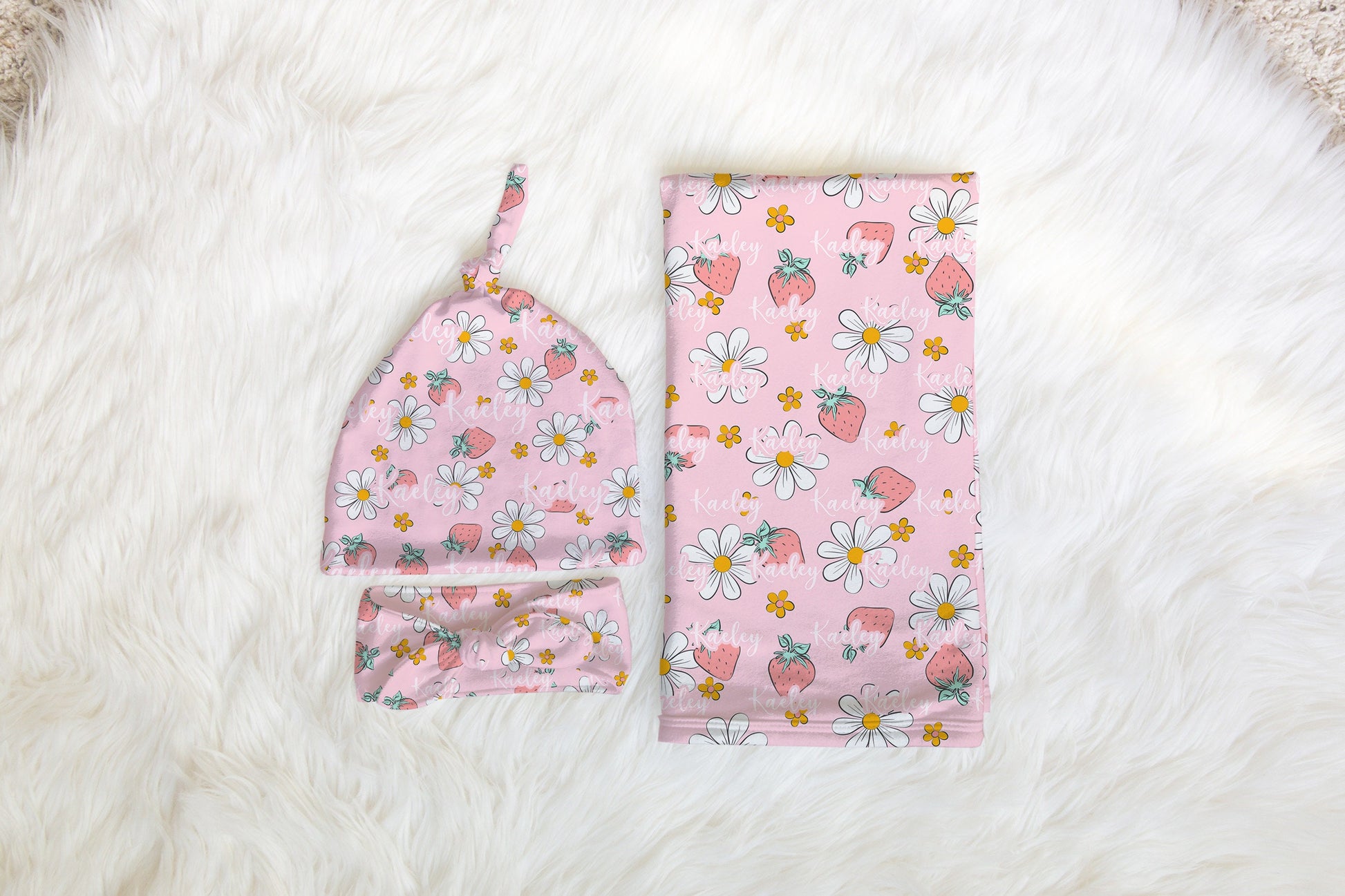 Personalized Strawberry Pink Baby Swaddle Set for newborn