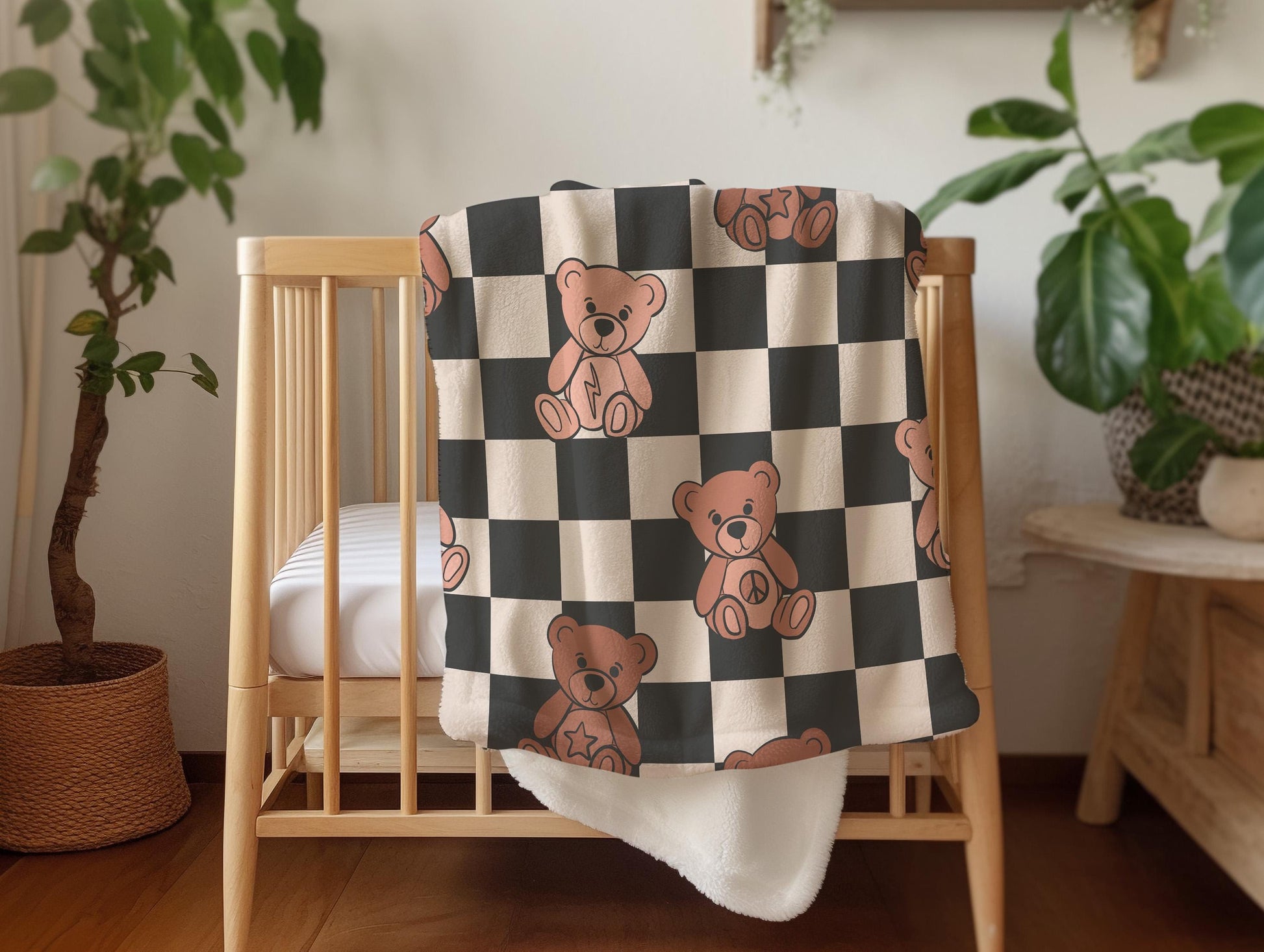 Give your little one the gift of comfort and charm with our Personalized Teddy Bear Blanket! Featuring an adorable teddy bear design with a stylish checkered pattern, this blanket is perfect for boys of all ages and makes a thoughtful keepsake for any special occasion.