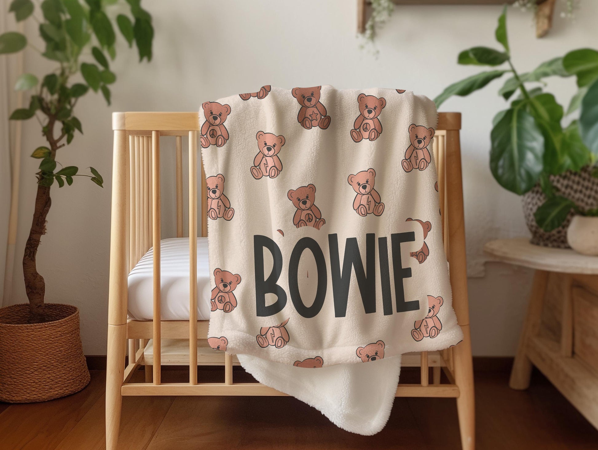 Teddy bear blanket for boys, personalized blanket custom name throw, birthday gift for him, custom name baby blanket, baby shower gift