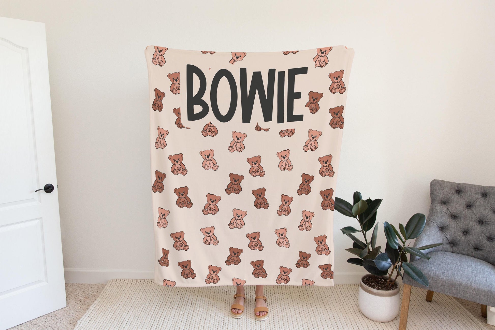 Teddy bear blanket for boys, personalized blanket custom name throw, birthday gift for him, custom name baby blanket, baby shower gift